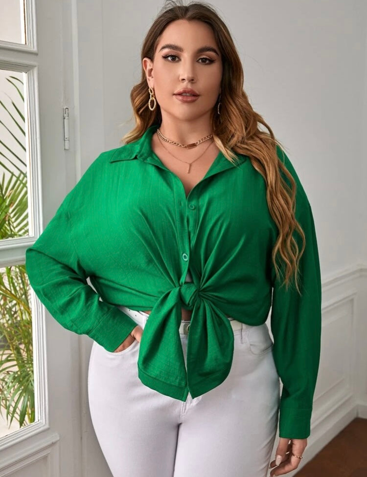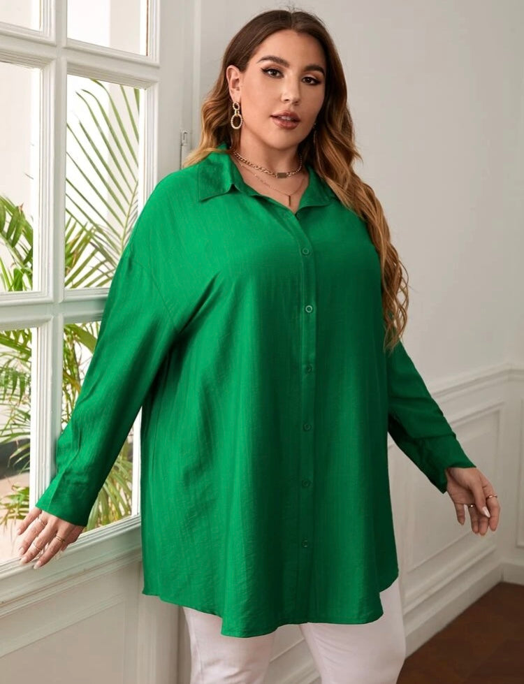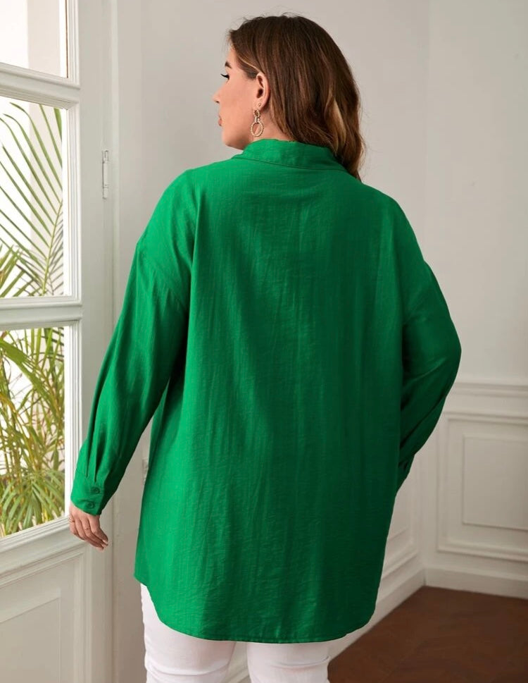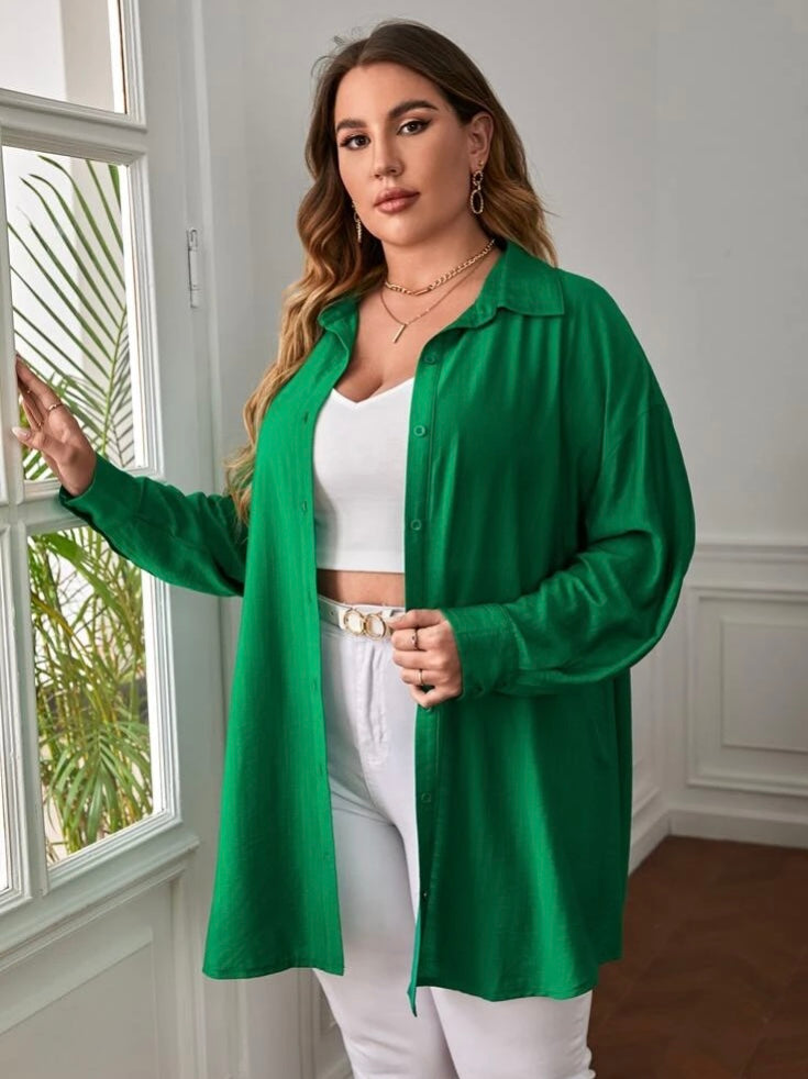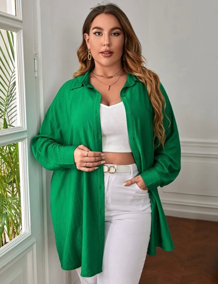 Beautiful Comfy Green Versatile Plus Long Sleeved Button Front Shirt Top Coat Dress Women’s Wear