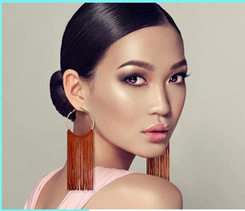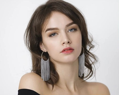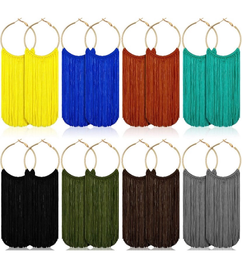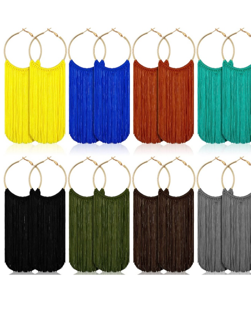 Fringe Styled Hoop Fashion Tassel Dangle Drop Bohemian Statement Earrings Women Accessories