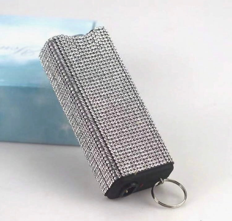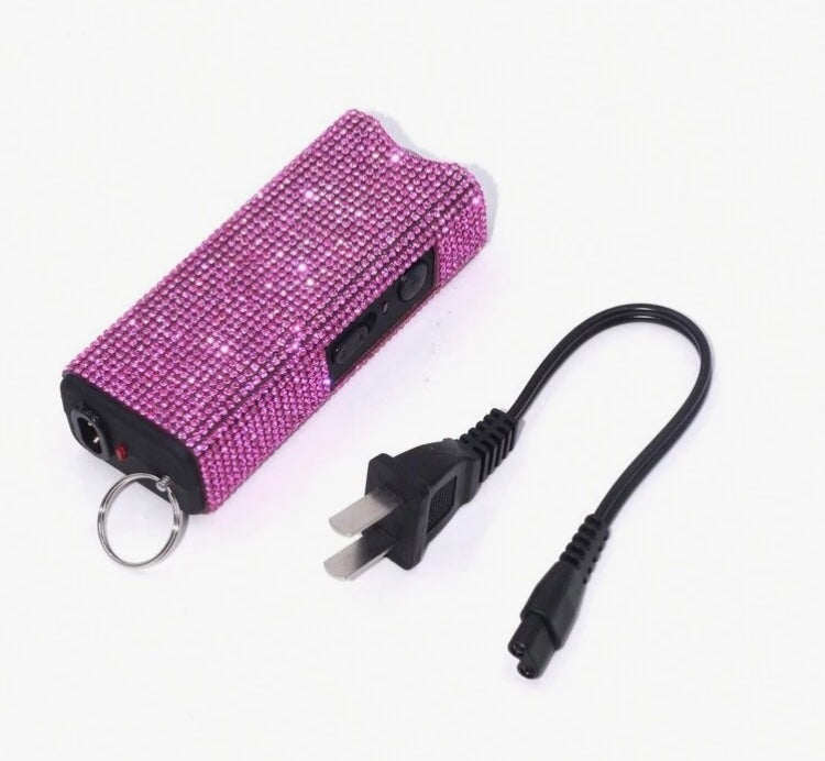 Powerful Cute Bling’d Out Glam Taser Safety Self-Defense Rhinestone w Flashlight Tactical Multi-Function Chargeable Keychain for Protection Accessories