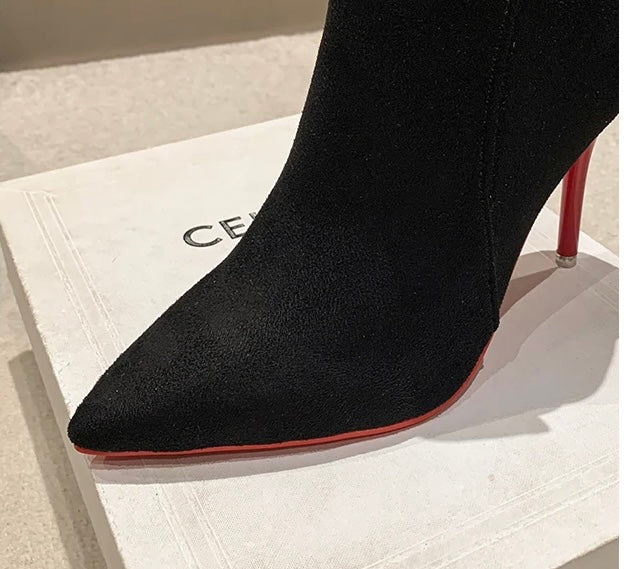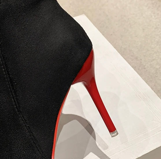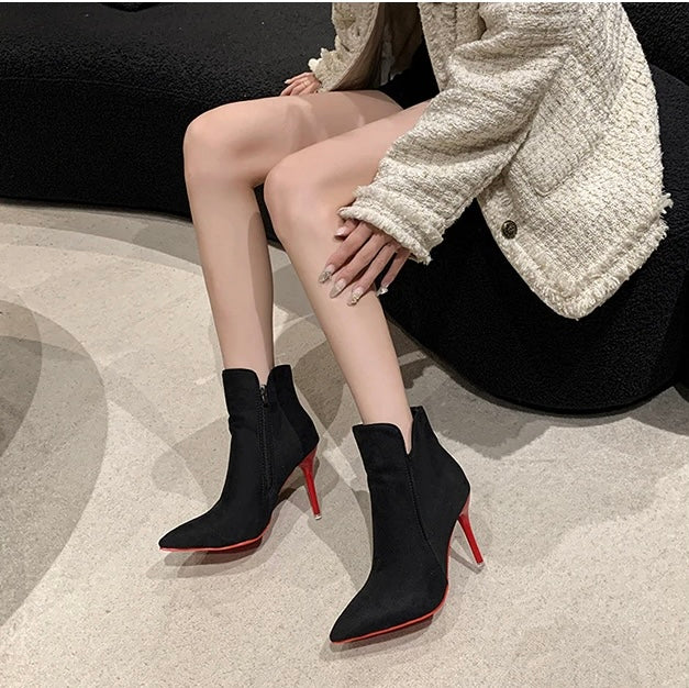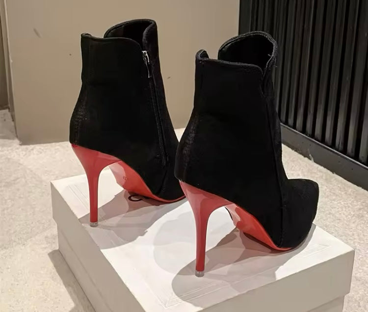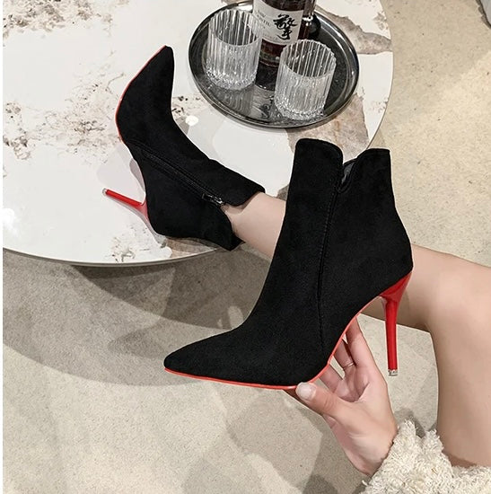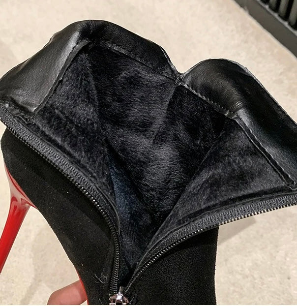 Stunning Black 10cm Height Stilettos Winter Red Bottom Heels Zip Warm Black Ankle Boots Women Footwear Shoes Women